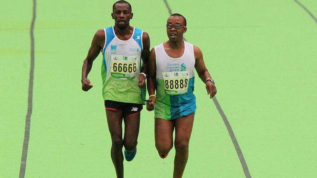 (Photo: Henry Wanyoike, right, with his guide on a run in 2013. Credit: Getty Images)