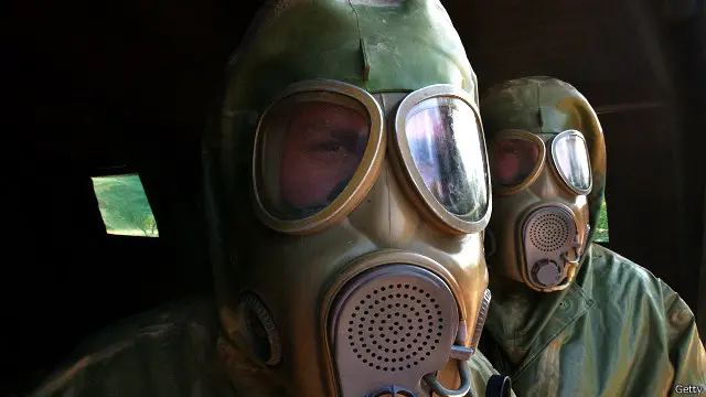 ABŞ-ın hərbi müdaxilə təhlükəsi ilə üzləşən prezident Əsəd ölkənin kimyəvi silah cəbbəxanasının ləğvinə icazə verdi. Arsenalın məhv edilməsi üzrə proses növbəti il başa çatdırıldı, lakin Kimyəvi Silahların Qadağanı Təşkilatı (Organisation for the Prohibition of Chemical Weapons - OPCW) münaqişədə toksik qazlardan istifadə hallarını sənədləşdirməkdə davam edirdi. Təşkilat 2014-cü ilin aprel və iyul ayları arasında qiyamçıların nəzarətində olan ərazilərə hücumlarda “xlorin” maddəsindən dəfələrlə istifadə olunduğunu aşkar etmişdi.