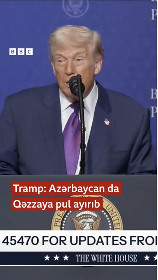 ABŞ Prezidenti Tramp: Azərbaycan da Qəzzaya pul ayırıb