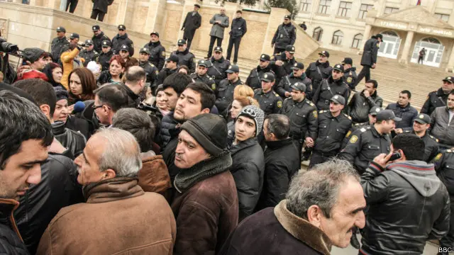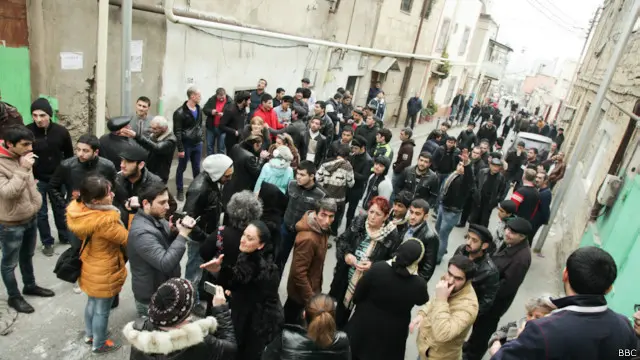 150 nömrəli məktəbin qarşısına toplaşan sakinləri isə polis əvvəlcə "pərən-pərən" salıb, fotojurnalist Kərimov deyir.