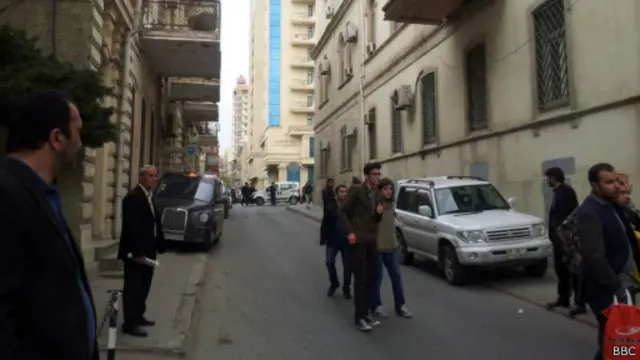 Proses başladıqdan sonra isə polis küçədə gözləyənləri və jurnalistləri "iki tərəfə bölüb", bunu BBC Azərbaycancaya jurnalist Əziz Kərimov deyir.