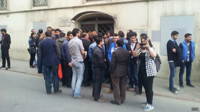 BBC Azərbaycanca Xidmətinin müxbiri Nailə Abdiyeva xəbər verir ki, məhkəmə binasının qarşısında onlarla polis və fəalların dostları, yaxınları və gəncləri dəstəkləyənlər toplaşıb.