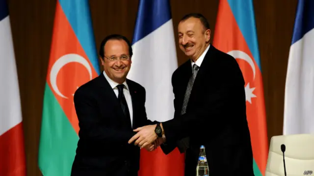 Fransa prezidenti Francois Hollande Azərbaycana səfərdə ikən onu görüşlərini ölkədəki insan haqları məsələsini əsasında keçirməyə çağırışlar Human Rights Watch kimi beynəlxalq təşkilatlardan da daxil oldu.