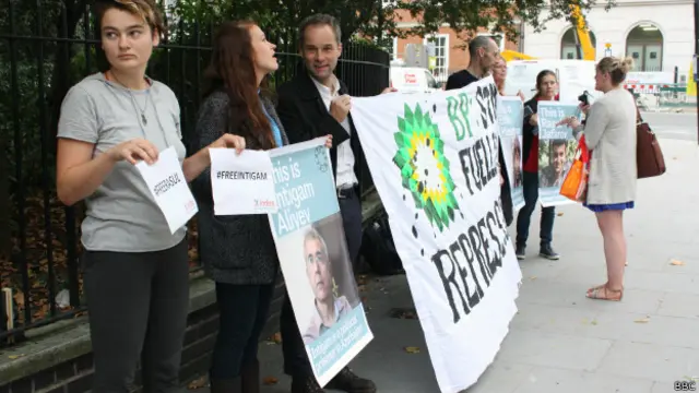 BP-nin Londondakı ofisi deyib ki, 12-yə yaxın adamın iştirak etdiyi aksiyadan xəbərdardır. "Biz onlardan məktub aldıq və məktublarına cavab olacaq", BP-nin mətbuat xidməti BBC Azərbaycancaya deyib.