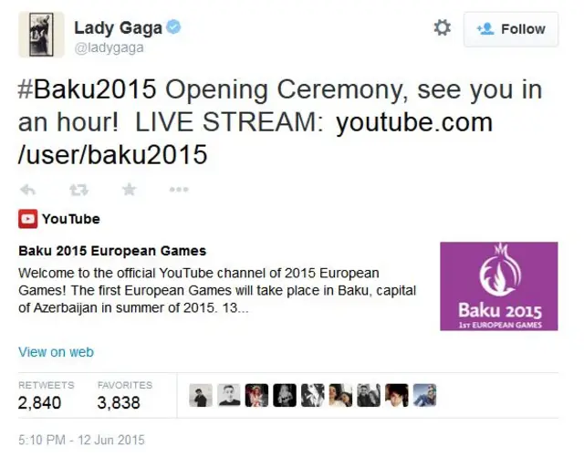 Təkcə #baku2015 ifadəsi son 24 saat ərzində 60 000 dəfədən çox tvitlənilib, #europeangames, #realbaku və #hellobaku kimi həştəqlərlə də on minlərlə tvit göndərilib.