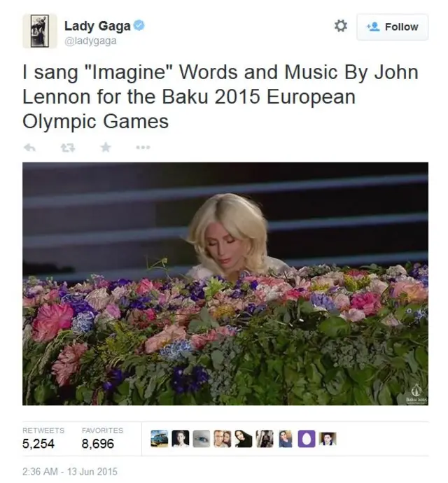 Çoxu üçün mərasimin ən böyük anı, dünya şöhrətli müğənni Lady Gaga-nın çıxışı olub: Lady Gaga-nın bununla bağlı tvitləri minlərlə dəfə paylaşılıb və bəyənilib.
