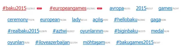Aztwi analitika saytında "qaynar mövzular"ın hamısı Avropa Oyunları ilə bağlıdır - onlar arasında "möhtəşəm" sözü də yer alıb.