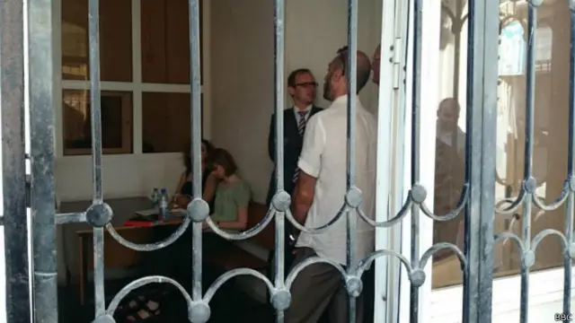"Həkim biraz gec gəldi, amma indi proses davam etdirilir, məhkəmə binasının qarşısındakı jurnalistlər BBC Azərbaycancaya deyib.
