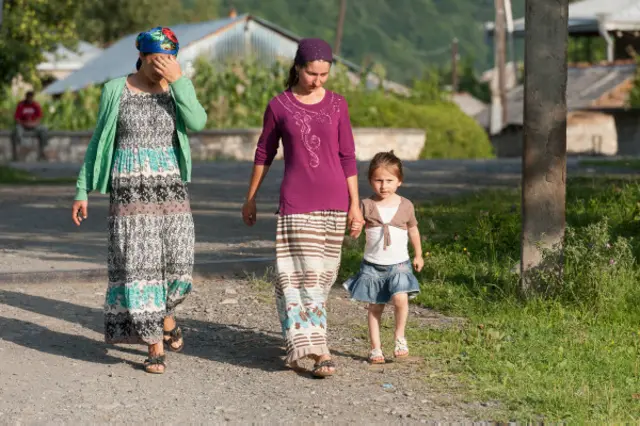 Uşaqlar Gürcüstanın Pankisi dərəsindəki balaca və mənzərəli Duisi kəndində, məscidin ağ-qara boyanmış səkisində oynayırlar.