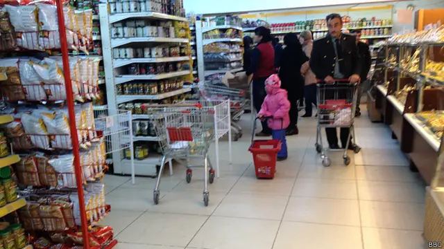 Mağazadan çox az məhsul almış alıcı isə obyekti tərk edərkən, qiymətlərin “çox baha olmasından” şikayət edir.