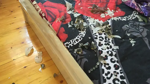 "Zərbə necə güclü oldusa, uşaqların çarpayısını qaldırıb yerə vurub. Ev toz içində idi, heç nə görünmürdü", evin xanımı hadisədən bəhs edərkən deyir.