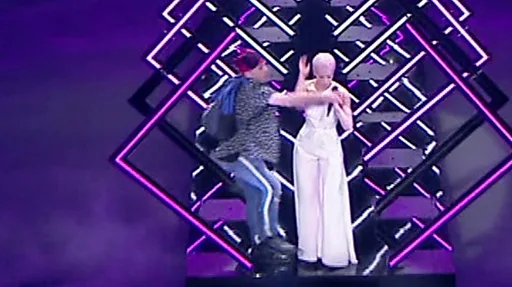 Final mərhələsində Britaniya nümayəndəsi çıxış etdiyi zaman naməlum kişi səhnəyə gözlənilmədən soxularaq qadın müğənninin əlindən mikrofonu qapıb və üzünü zala tutaraq qışqırıb: "Britaniya mediasının nasistləri, biz azadlıq tələb edirik".