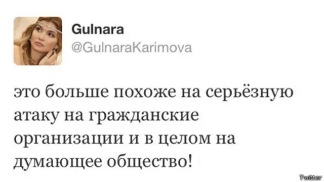 "Bu, vətəndaş təşkilatlarına və düşünən cəmiyyətə qarşı ciddi bir hücuma oxşayır", noyabrın sonunda onun xeyriyyəçi təşkilatı Fund Forum bağlatdırılanda o, Twitter səhifəsində yazıb. "Gərginlik artır", o əlavə edib.