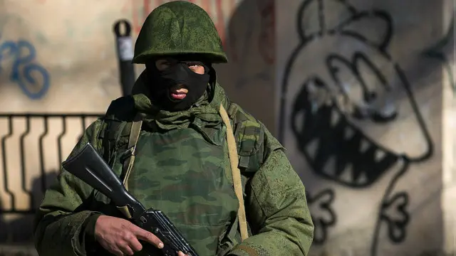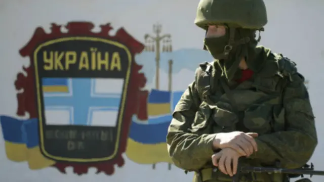 21:03: Maskalı, Rusiya tərəfdarı olan əsgərlər Krımın cənubundakı Perevalnoye piyada bazasında keşik çəkir.