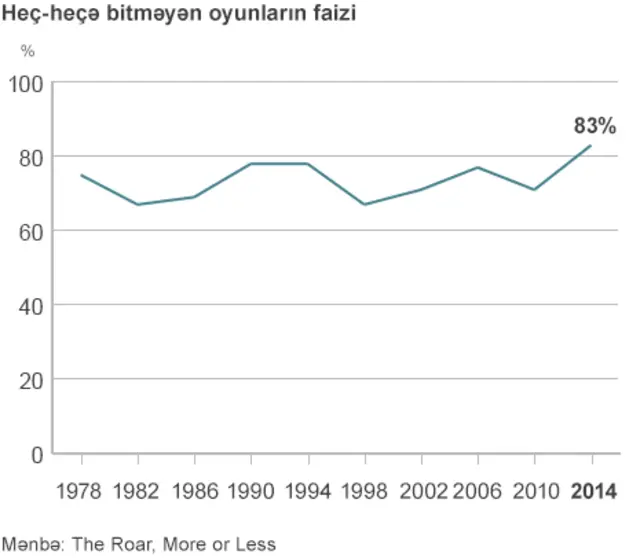 Yaxın nəticələr. "Biz hər iki komandanın sona qədər oynadığı daha çox oyunun şahidi oluruq", Wainwright deyir. 44 faiz oyunlar sadəcə bir qol fərqi ilə başa çatıb. Bu, 1990-cı ildə keçirilmiş çempionatla eynidir. Ən az göstərici isə 17 faizlə 1974-cü ildə qeydə alınıb.