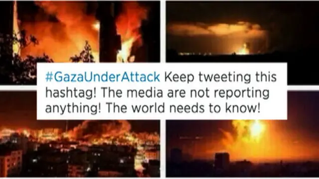 Son həftə ərzində #GazaUnderAttack (Qəzza hücum altındadır) həştəqi yüzminlərlə dəfə istifadə olunub – yeddi gün ərzində bu həştəqlə 375 000 tweet yazılıb. Ondan istifadə edənlərin çoxu hava hücumlarının təsirlərini göstərdiyini iddia edən fotolar paylaşıblar.