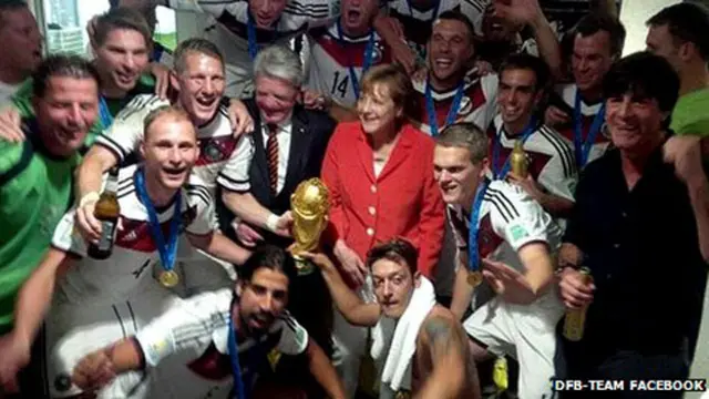 Almaniya millisi qələbə qazanan kimi bunu sosial media hesablarında qeyd edib. Komandanın Almaniya kansleri Angela Merkel ilə fotosu Facebook və Instagramda paylaşılandan sonra cəmi bir neçə saat ərzində ümumi "like"ların sayı 250 000-i keçib.
