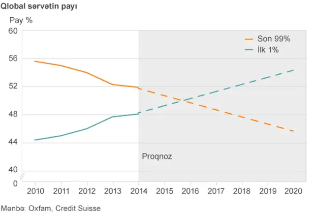 Oxfam, hazırki trendləri nəzərə alaraq bildirib ki? 2016-ci ilədək bir faizin varlılığı 50 faizə çatacaq.