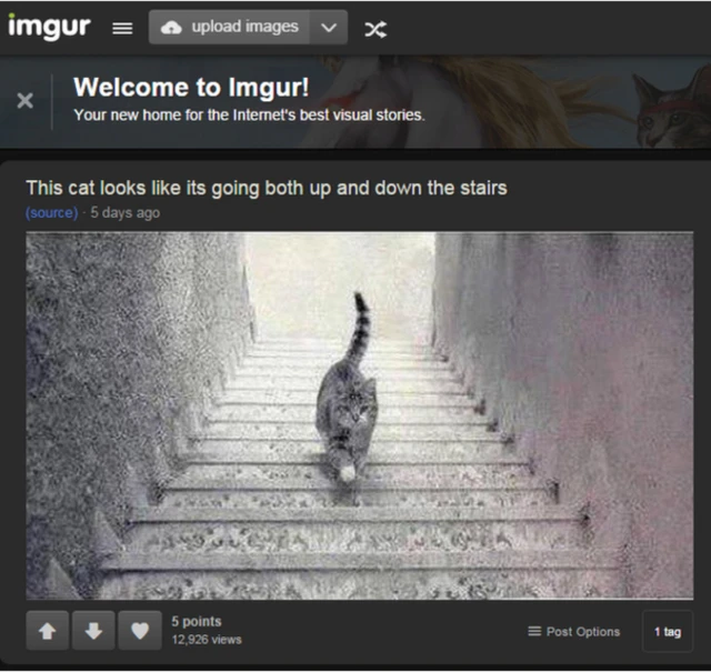 Ağ-qara şəkildəki pişik pilləkənlərlə qalxır yoxsa aşağı düşür? Internetdə görüntünü müzakirə edənlər bu sualı verirlər.