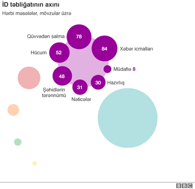 Məsələn, adi günlərdən biri olan 23 şəvvalda 50-dək təbliğat materialı yayılmışdı. Bunların arasında cihada həsr olunmuş çoxsaylı fraqmentlər var idi. Lakin diqqəti ən çox cəlb edən İD təbliğatında "dinc həyata" həsr olunmuş materialların artması idi.