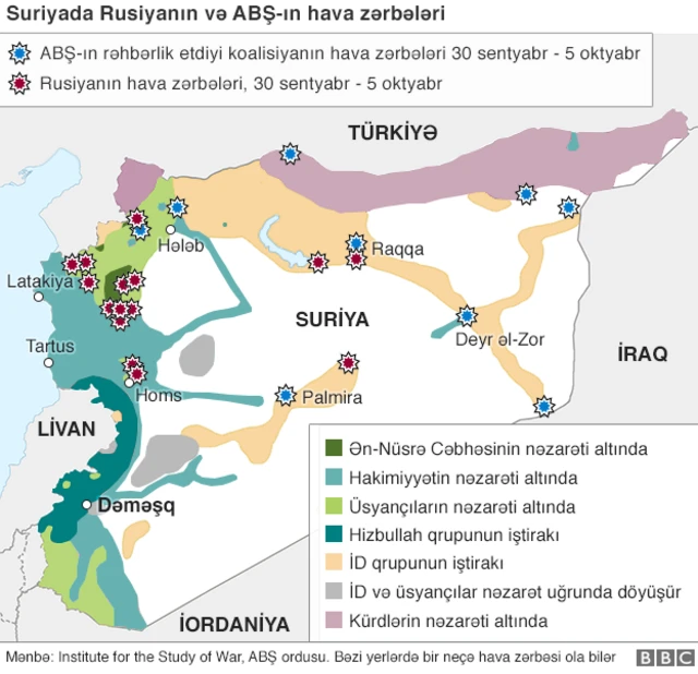 “Mənə belə gəlir ki, - deyir Kofman, - İD-ə qarşı zərbələr görüntü yaratmaq və ümumikdə hava kampaniyasına haqq qazandırmaq üçün endirilir. Rusiya hücumlarının əsas diqqəti Suriya ordusunun yaxınlığında mövqelənmiş və İD-ə aidiyyəti olmayan qruplaşmalara yönəldilib”.