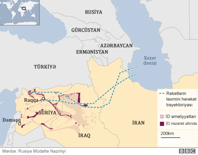 Son günlər Rusiya həmçinin Xəzər dənizindəki hərbi gəmilərdən uzaqmənzilli raketlər atmağa başlayıb. Bir çox qərb analitikləri kimi Michael Kofman da düşünür ki, burada daha çox “tamaşa” elementi olub.