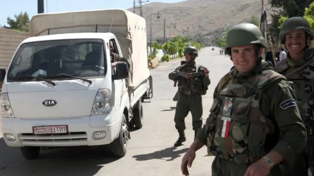 Yardım karvanını müşayiət edən BBC Ərəbcə müxbiri Assad Abboud bildirib ki, yük maşınları şəhərdən 12 km məsafədəki nəzarət keçid məntəqəsində gözləyirlər.
