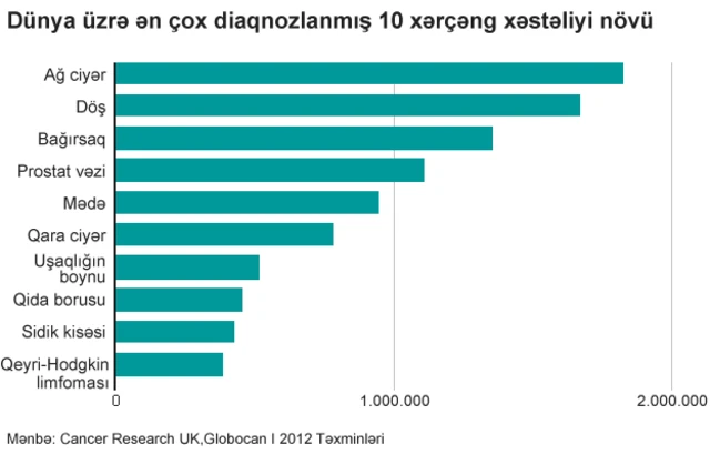 Dünyada ən çox sayda ölümlə nəticələnən xəstəliklər sıyahısında xərcəng birincilər arasındadır.