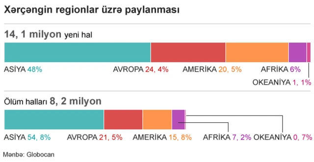 Ümumdünya Səhiyyə Təşkilatının xərçəngə dair son hesabatına əsasən, xəstəliyə yeni tutulma hallarının 60 faizdən çoxu Afrika, Asiya, Mərkəzi və Cənubi Amerikanın payına düşür.