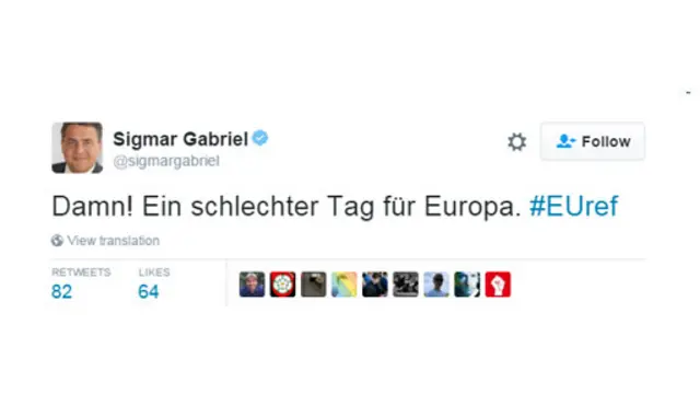 "Bu, Britaniya, həmçinin Avropa və xüsusən Almaniya iqtisadiyyatı üçün fəlakət nəticədir. Dünyada ən qədim demokratiyanın bizə arxasını çevirməsi narahatedicidir".