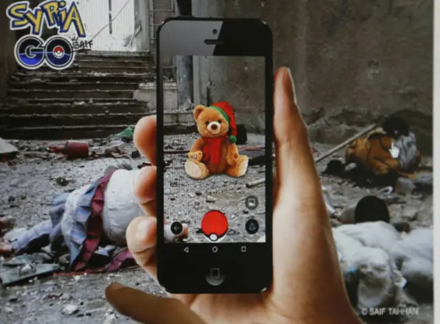 Danimarkada suriyalı qrafika dizayneri Saif Tahhan Pokemon şəkillərindən istifadə etməklə Suriya Go xəyali oyununun səhnələrini yaradıb. O Pokemon axtarışlarındansa, müharibə girdabında olan insanlara təhlükəsizlik, təhsil və tibbi təchizat axtarışı aparmağa dəvət edir.