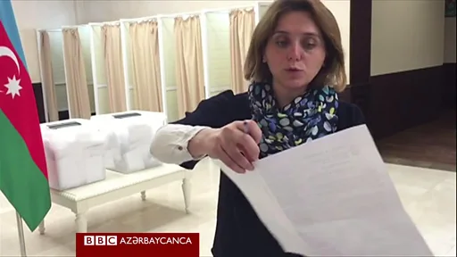 Komissiya üzvlərindən biri dolu olan bülleten qutularını göstərərək seçicilərin aktiv olduğunu danışır.