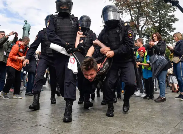 Rusiyada müxalif namizədin Moskva şəhər Dumasına keçirilən seçkilərə buraxılmamasına etiraz edən insanlar avqustun 3-də küçələrdə yürüş təşkil ediblər.