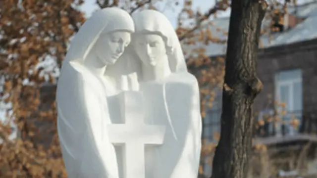 Rusiya prezidentinin Ermənistana səfəri günü Yerevanın mərkəzində “erməni və rus xalqlarının əsrlərdən bəri davam edən dostluğunu” simvolu kimi “Vahid xaç” heykəli açılıb.