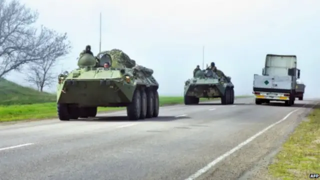 Britaniyanın xarici işlər naziri William Hague bildirib ki, Rusiya binaların zəbt edilməsi üçün "gizli maskalanmış" silahlı qruplar göndərib.