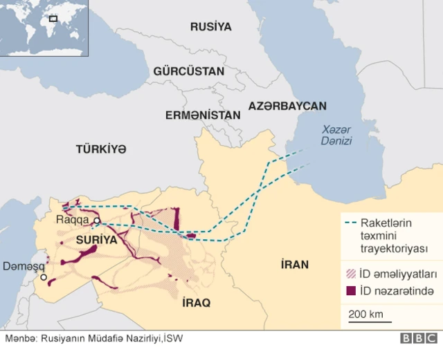 Çərşənbə günü Rusiya deyib ki, Suriyanın şimal və şimal-qərbindəki hədəflərə 26 qanadlı raket buraxıb. ABŞ-ın iddiasından sonra, rəsmi Moskva təkrarən deyib ki, raketlərin hamısı hədəfləri məhv edib.