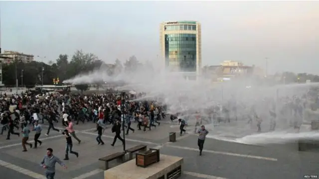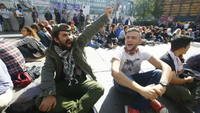 Diyarbəkir şəhərinin cənub-şərqində polis Ankarada baş vermiş partlayışa etiraz edən insanları dağıtmaq üçün gözyaşardıcı qaz və su şırnaqlarından istifadə edib.
