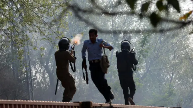 পুলিশ বলছে, মি. খানের সমর্থকরা আদালত অঙ্গনের কাছে ইটপাটকেল ছুঁড়েছে যার পর তারা কাঁদানে গ্যাস ব্যবহার করে।