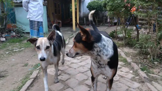 বৃহস্পতিবার ভৌমিক বাড়িতে গিয়ে দেখা পাওয়া গেল সেই কুকুরগুলোর কয়েকটিকে।