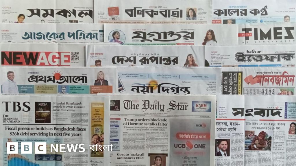 দ্য ডেইলি স্টারের প্রধান শিরোনাম— Trump orders blockade of Hormuz as talks falter; অর্থাৎ আলোচনা ভেস্তে যাওয়ার পর হরমুজ প্রণালি অবরোধের ঘোষণা ট্রাম্পের।