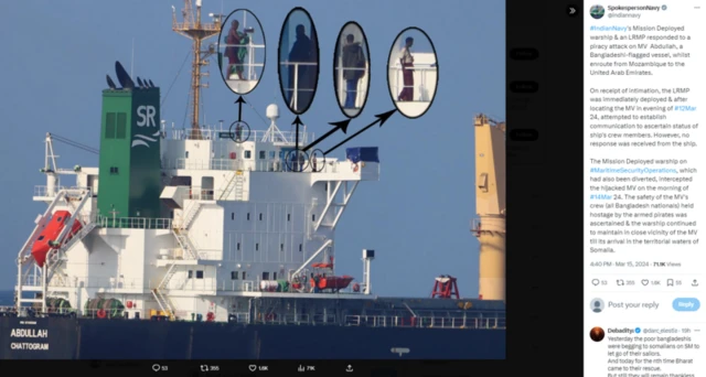 “দুপুর দুইটার দিকে তারা আমাদের সাথে যোগাযোগ করেছে। জাহাজ ও নাবিকদের উদ্ধারের ব্যাপারে আমরা আলোচনা শুরু করেছি,” বিবিসি বাংলাকে বলেন মি. ইসলাম।