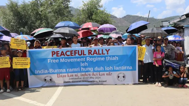 তাই কেন্দ্রীয় সরকারের সিদ্ধান্তের বিরুদ্ধে মিজোরামের অনেক এলাকায়, মনিপুরের তেঙ্গনৌপাল জেলায় আর নাগাল্যান্ডের জনজাতি গোষ্ঠীগুলি পরপর বিক্ষোভ সমাবেশ করছে। জমায়েত হয়েছে মিজোরাম আর মিয়ানমারের সীমান্ত দ্বারেও। সেখানে মিয়ানমার সীমান্তের ওপারে বহু জো জনজাতির মানুষ জড়ো হয়েছিলেন সভার বক্তব্য শুনতে।