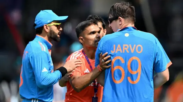 চেন্নাইয়ের এমএ চিদামবারাম স্টেডিয়ামে ড্যানিয়েল জার্ভিস খেলার মধ্যে ঢুকে পড়েন কোহলির কাছাকাছি যাওয়ার সাথে সাথে নিরাপত্তাকর্মীরা তাকে ধরে ফেলেন এবং মাঠের বাইরে নিয়ে যান।