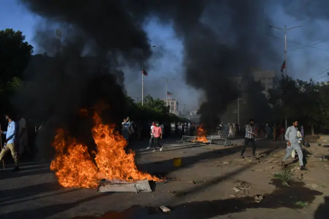 এর পরই পাকিস্তানের বিভিন্ন জায়গায় বিক্ষোভ ছড়িয়ে পড়ে। লাহোর আর করাচিতে পুলিশ মি. খানের সমর্থকদের লক্ষ্য করে জল কামান এবং কাঁদানে গ্যাস ছেড়েছে। বিক্ষোভ হয়েছে পেশাওয়ারেও।