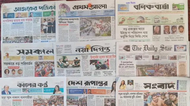 3 surprise picks sworn in as advisers — এটি দ্য ডেইলি স্টারের প্রধান শিরোনাম। উপদেষ্টা পরিষদে তিন চমকের কথা বলা হয়েছে প্রতিবেদনে। অন্তর্বর্তী সরকারে আরও তিন উপদেষ্টা যুক্ত হওয়ার সংবাদটি ঢাকা থেকে প্রকাশিত সব পত্রিকায় এসেছে আজ।