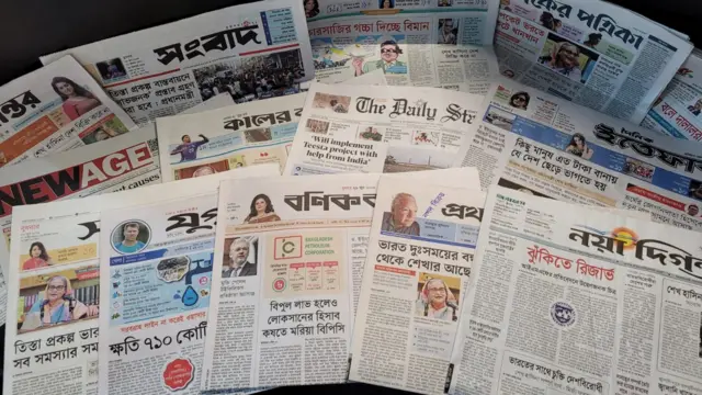 যেমন দ্য ডেইলি স্টারের প্রথম পাতায় ভারতের সাথে চুক্তি প্রসঙ্গে খবর করেছে যার শিরোনাম, ‘New deals with India ‘go against country’s interest’’ অর্থাৎ, ‘ভারতের সঙ্গে নতুন চুক্তি ‘দেশের স্বার্থবিরোধী’’।