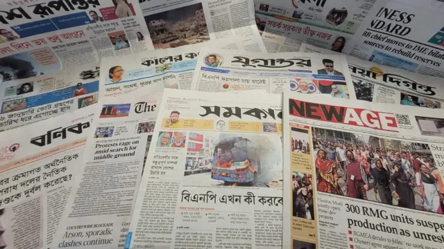 এদিকে পোশাক শ্রমিকদের বিক্ষোভ নিয়ে নিউ এইজের প্রধান শিরোনাম, ‘300 RMG units in Bangladesh suspend production as unrest on’ অর্থাৎ ‘আন্দোলনের মুখে বাংলাদেশের ৩০০ গার্মেন্টস কারখানায় উৎপাদন বন্ধ’।