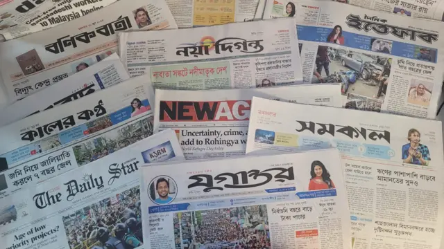দ্য ডেইলি স্টারের প্রথম পাতার খবর, “Eight sued under DSA for ‘defaming’ info minister”। তথ্যমন্ত্রী হাছান মাহমুদের বিরুদ্ধে ‘ভুয়া, ভিত্তিহীন ও মানহানিকর তথ্য’ প্রকাশ ও প্রচারের অভিযোগে ডিজিটাল নিরাপত্তা আইনে (ডিএসএ) আটজনের বিরুদ্ধে মামলা করেছেন চট্টগ্রামের রাঙ্গুনিয়া উপজেলার এক যুবলীগ নেতা।