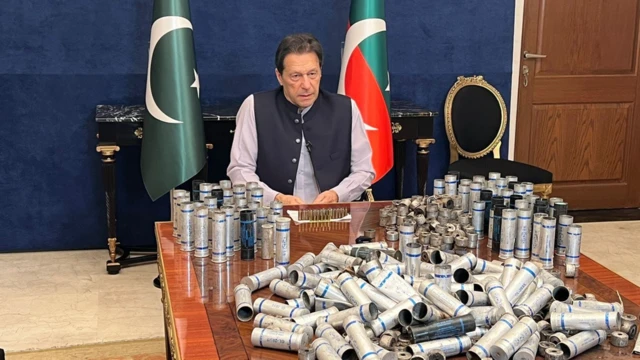 ইমরান খান এসময় গুলি ও কাঁদানের গ্যাসের শেল দেখিয়ে বলেন যে এগুলো তার বাসভবনের ভেতরে নিক্ষেপ করা হয়েছে।
