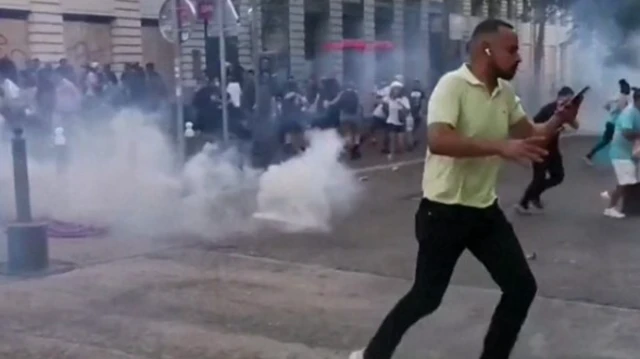 অনলাইনে ছড়িয়ে পড়া ভিডিওতে দেখা যাচ্ছে যে মার্সেইয়ের কেন্দ্রস্থল লা ক্যানেবিয়েরে সংঘর্ষের ঘটনা ঘটেছে।